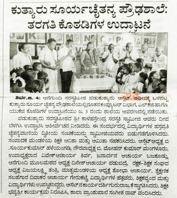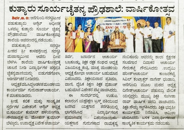 MEDIA COVERAGE OF SCHOOL ANNUAL DAY CELEBRATION AND INAUGURATION OF THE EVENT BY OUR JAGADGURU, PARAMA SAMRAKSHAKARU, ANANTASHREE VIBHUSHITA KALAHASTENDRA SARASWATHI MAHASWAMIJI, PADUKUTYARU