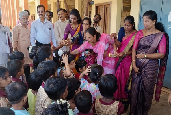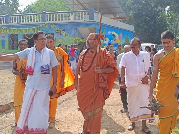 INAGURATION OF NEW LKG, PRE LKG CLASS ROOMS WITH SUPERIOR INTERIORS AND AMENITIES BY OUR JAGADGURU OF SARASWATHI PEETHA SHRI KALAHASTENDRA SHRI SRASWATHI SWAMIJI, PADUKUTYARU, UDUPI